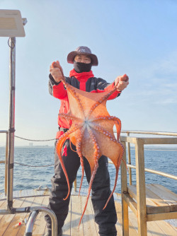 ???? 2월 21일 홀리호 대왕문어 조황 소식안녕하세요,홀리호 입니다. ????오늘은 9분 조사님 모시고 기분 좋게 출항했습니다.날씨와 분위기는 좋았지만, 초반에는 문어 얼굴 보기가 쉽지