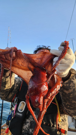 ???? 2월 21일 홀리호 대왕문어 조황 소식안녕하세요,홀리호 입니다. ????오늘은 9분 조사님 모시고 기분 좋게 출항했습니다.날씨와 분위기는 좋았지만, 초반에는 문어 얼굴 보기가 쉽지